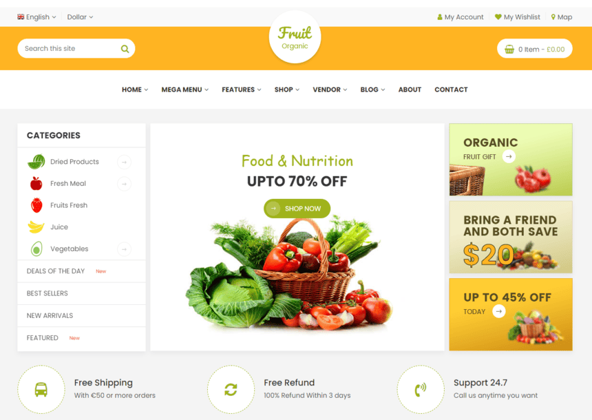 FruitShop is a vibrant and responsive website designed specifically for online grocery and fruit stores. It features a fresh and appealing layout that highlights products effectively, making it easy for customers to browse and shop. Key highlights include: