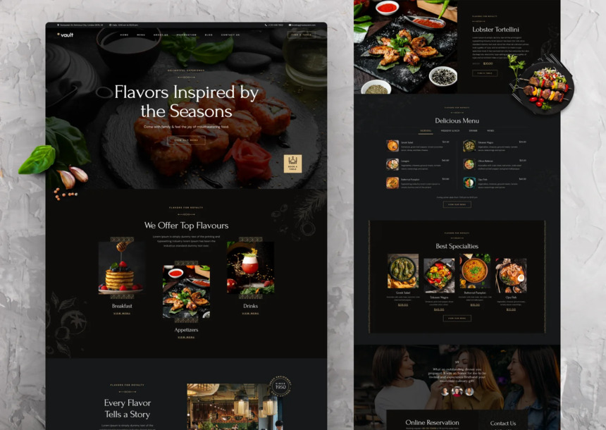 Vault is an Online restaurant website is designed with an elegant design that will draw your clients. The style is by references the look and impression of a restaurant. The business owner can display their menus for food and alter the information on the site. Customers can purchase food from the site by making payments via the internet. The business owner can control the order through the Admin panel, and the owner can create additional administrators and grant permission to some regions of the admin panel. Ultimately, it's the ideal solution for every size restaurant Business.